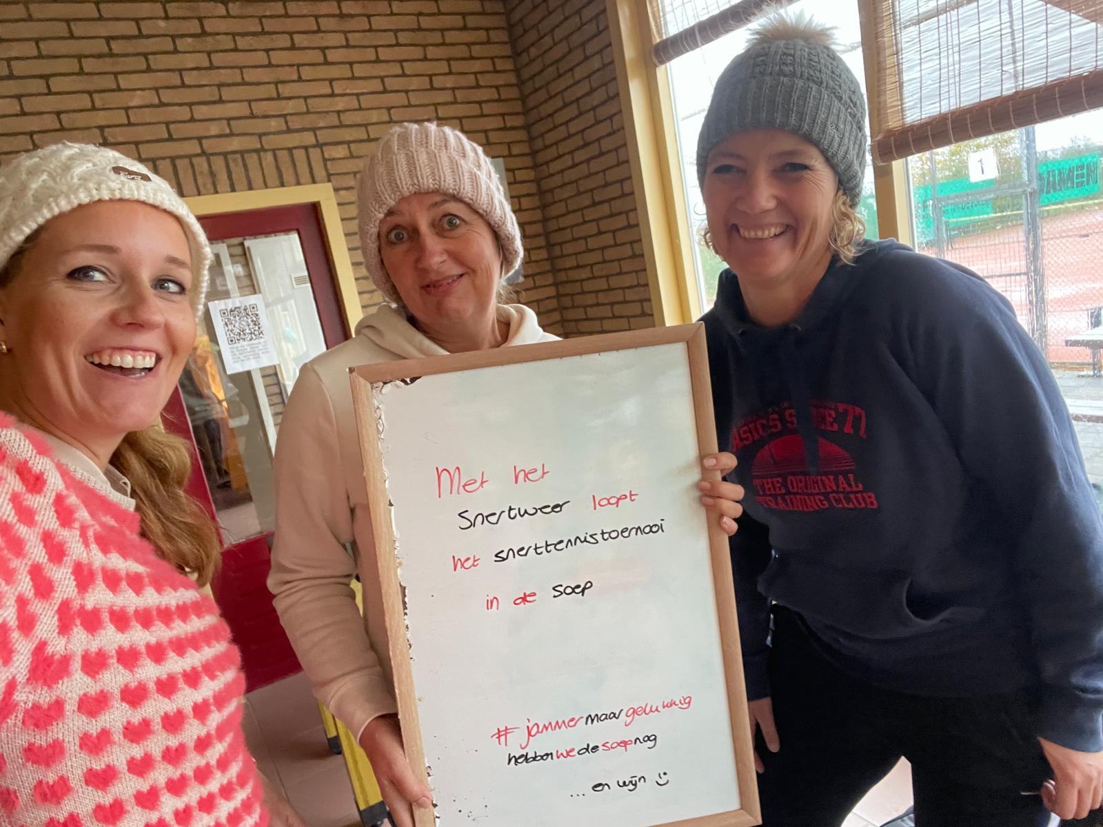 Op 1 november organiseerden we het snerttoernooi. Even leek het niet door te kunnen gaan door het slechte weer, maar uiteindelijk werd er toch getennist én snert gegeten. De kantine was goed gevuld met fanatieke leden die zich niet lieten weerhouden door het winterse weer.